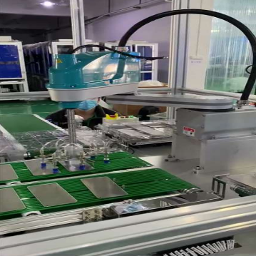 四元數(shù)機(jī)械手視覺(jué)分揀系統(tǒng)應(yīng)用于手機(jī)蓋板,末端工位識(shí)別抓取材料,到良品區(qū)與不良品區(qū)分盤放置,材料經(jīng)前端檢測(cè)機(jī)臺(tái),分開(kāi)放置到同一條流水線上,視覺(jué)用于識(shí)別材料邊沿,使吸盤準(zhǔn)確抓取材料至料盤中。